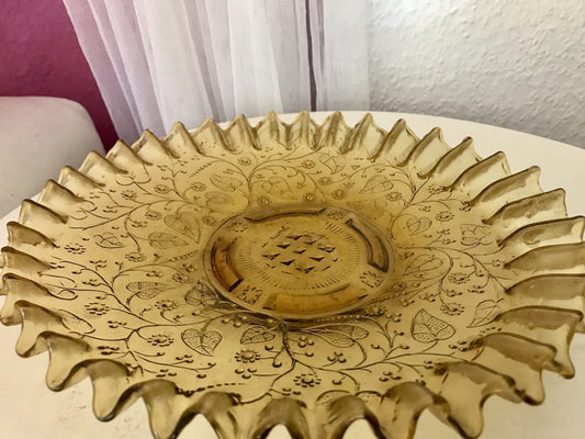 Antik Jugendstil Serviettenrand Pressglas Schale Glas Fenne Ewald Gelb Selten!