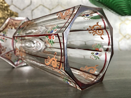 Antikisiert Replik Böhmisch Biedermeier Email-Malerei Glas Fußbecher bemalt