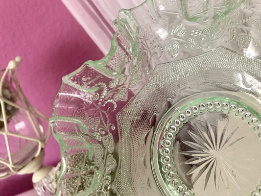 Antik Jugendstil Serviettenrand Pressglas Schale Glas Uranglas grün