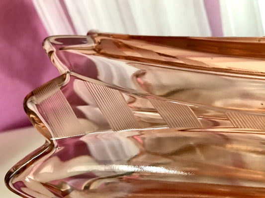 Antik Art Déco Vase Glasvase Pressglas Glas Rosalin rosa Blumenvase Schwepnitz