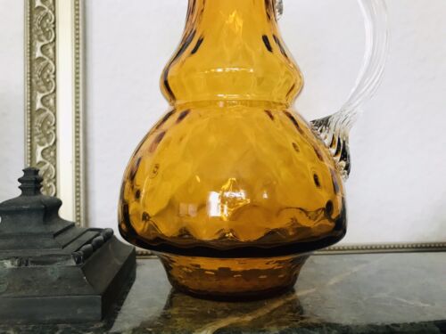 Vintage Vase Glasvase Henkelvase 60er Bernstein Gelb Amber Glas mundgeblasen