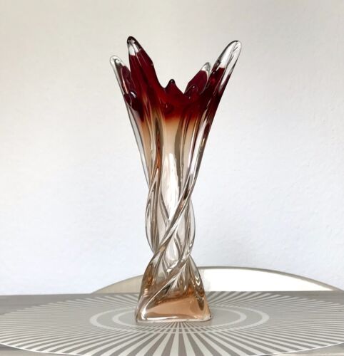 Vintage Vase Glas mundgeblasen Murano Glasvase twisted rot apricot Zipfel