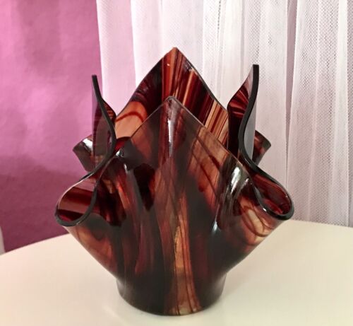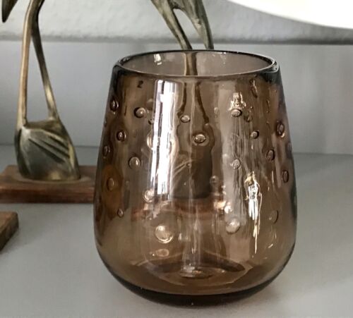 Vintage Vase Glasvase Schale Glas mundgeblasen Murano Rauchglas braun Luftblasen