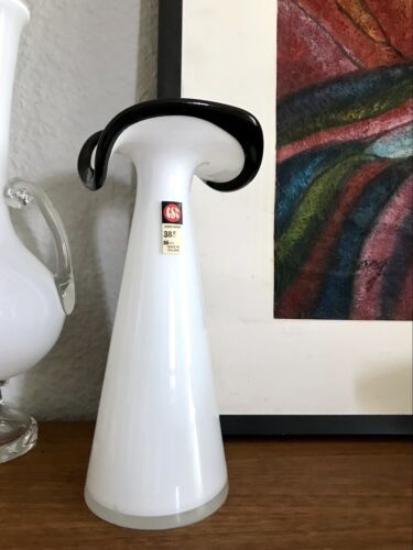 Vintage weiß schwarz Napoleon Designer Vase Blumenvase Glasvase Glas Tarnowiec