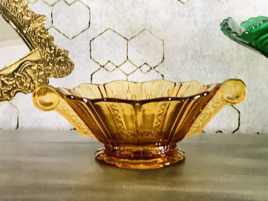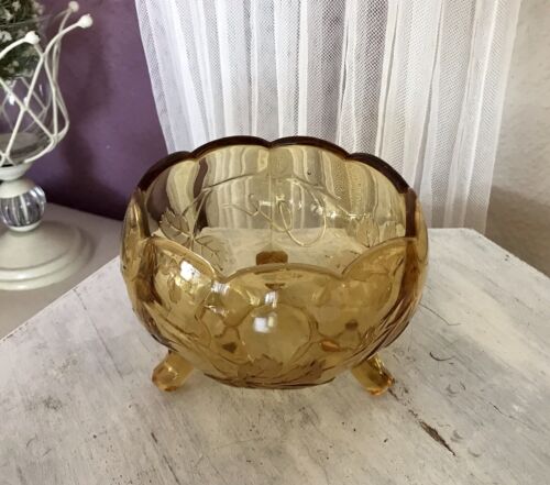 Weinlaub Art Déco Bernstein gelb Schale Pressglas Glasschale Bonboniere
