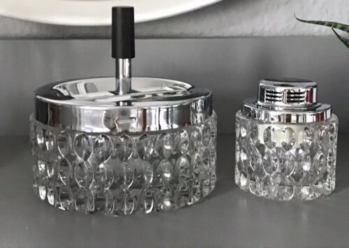 Vintage Set Erhard & Söhne Kristallglas Aschenbecher Ascher Roulette & Feuerzeug