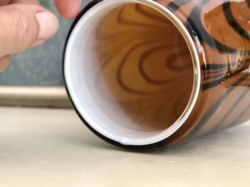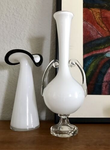 Vintage Vase Glasvase Henkelvase Krug 60er weiß lila überfangen Glas Moretti