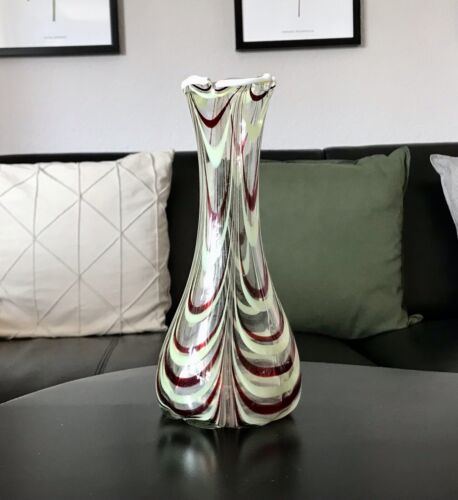 Vintage Vase Glasvase Glas mundgeblasen Abriss grün rot Murano wunderschön!