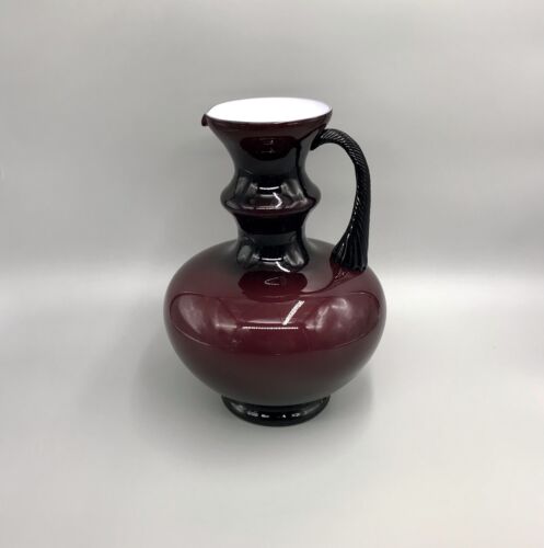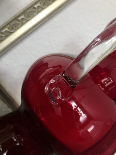 Vintage Vase Glasvase Henkelvase Krug 60er 70er rot Glas mundgeblasen Schön!!