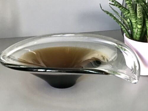 Vintage Somerso Design Schale Glas braungelb Bernstein Überfangglas Skandi