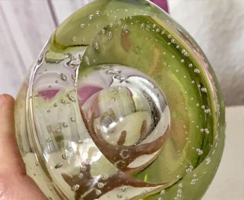 Vintage Vase Glas mundgeblasen Murano Glasvase grüngelb kontr. Luftblasen Höcker