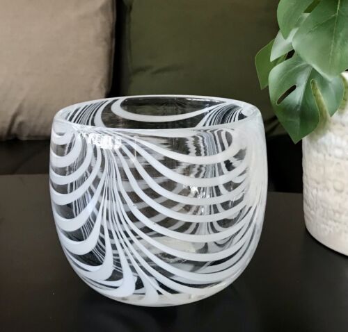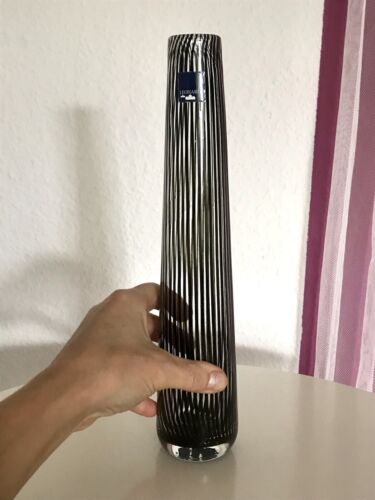 Vintage Vase Glasvase schwarze Streifen Edel Glaskunst Leonardo