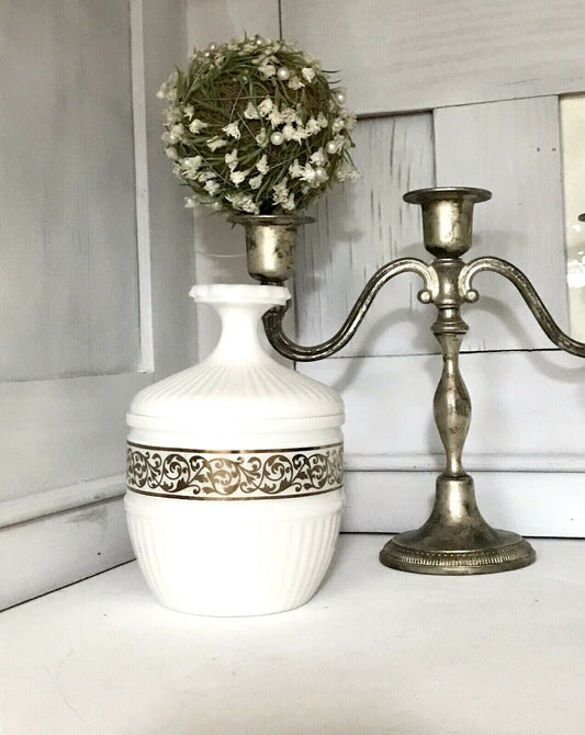 Vintage Opalglas Milchglas Dose weiß Gold Schale Schatulle