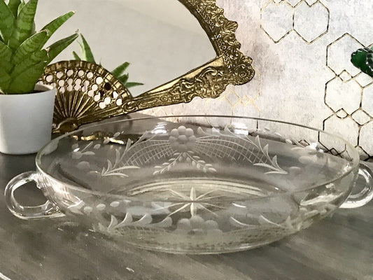 Antik EDEL Art Déco Schale Glasschale mundgeblasen geschliffen mit Henkeln