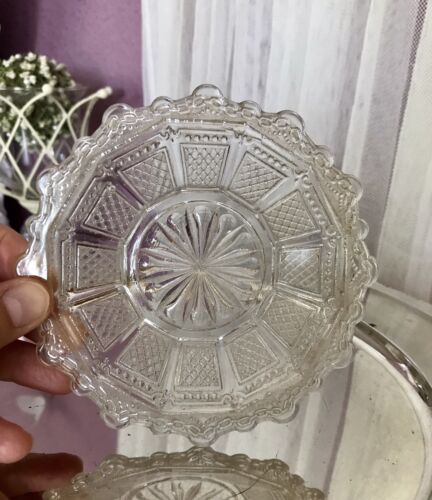 wunderschönes Antik Pressglas Teller Glas 12 passig Ketten-Muster Rar!