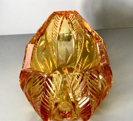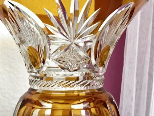 Antik Art Déco Glasvase Kristallglas Vase Bernstein Gelb Überfangglas Moser?