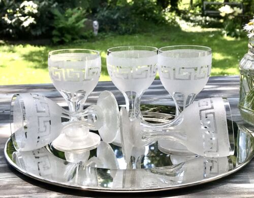 Antik 5 Weingläser Fußbecher Villeroy&Boch geätzt Pokalglas Hohlschaft Glas 1880