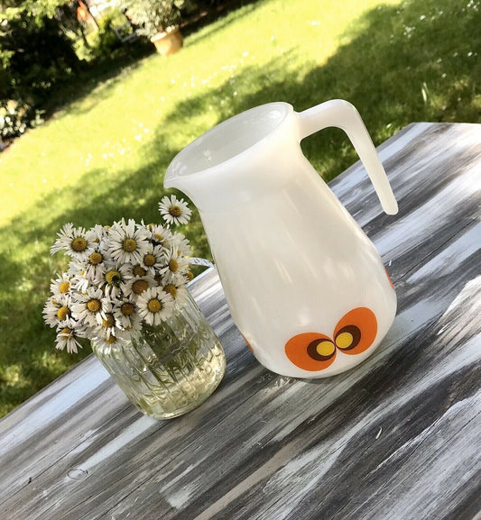 Vintage 70er Pfauenauge Krug Kanne Opalinglas Schott Mainz Jena Glas Pop Art