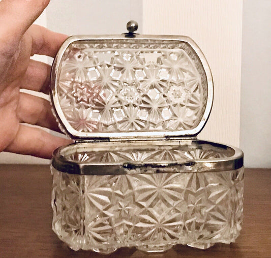 Antik Rar Art Déco Pressglas Zuckerdose Schatulle Deckeldose Zuckerkoffer Montur