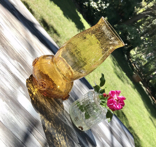 Antik Craqueleè Vase Glasvase Bernstein Gelb Amber Art Déco Nuppen