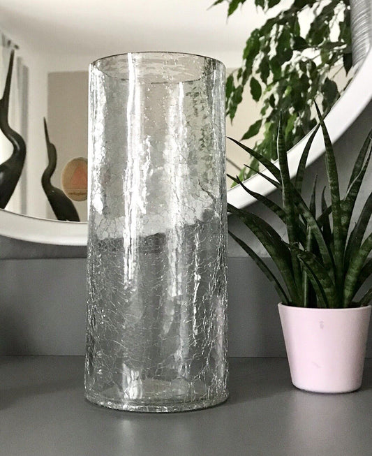 Vintage Kristallglas Kunstglas Craquelée Vase Glasvase zylindrisch groß