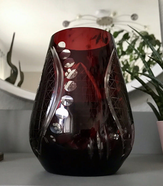 Antik alt Art Déco rubin rot geschliffen Überfangglas Vase Glasvase geschliffen