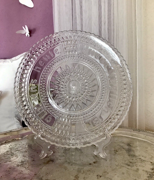 Art Déco Pressglas Schale Antik Brotteller Unser täglich Brot gib uns heute