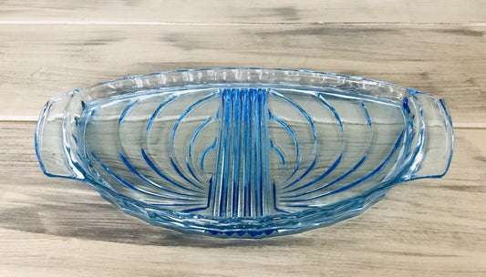 Antik Art Déco Pressglas Tablett Blau Glas ausgefallen asymmetrisch