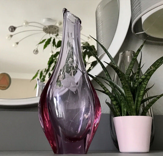Vintage Glasvase Fisch Glas lila Alexandrit Kristallglas M. Klinger Zelezny Brod