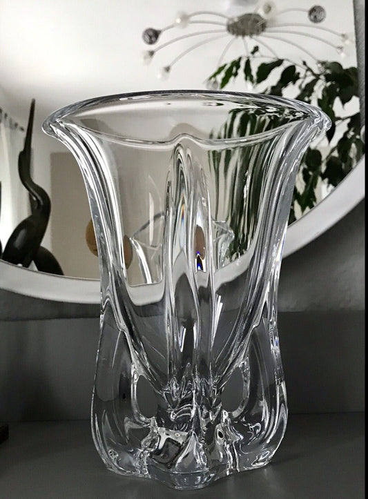 Vintage schwere Vase Glasvase Kristallglas mundgeblasen SCHÖN Art Vannes France