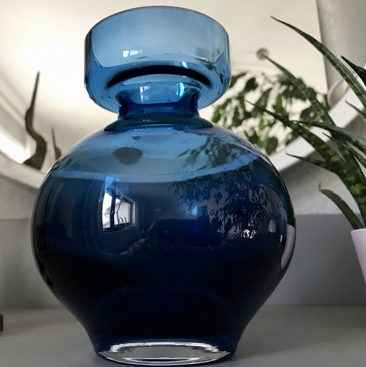 Vintage 60er Design Glasvase Glas Blau Vase Mid Century Schön als Zwiebelglas