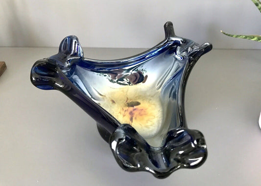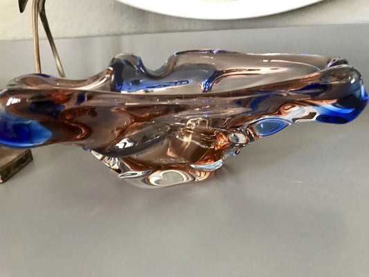 Murano? Böhmen? 60er Jahre Aschenbecher Schale Glas apricot Blau Edel