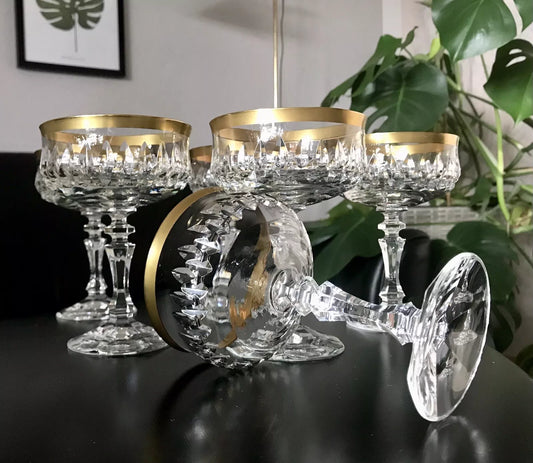 Vintage 12 EDEL Sekt Champagnerschalen Gläser Kristallglas Sektschalen Goldrand