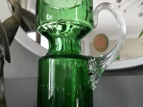 Vintage Vase Murano Glasvase grün Luftblasen Henkelvase