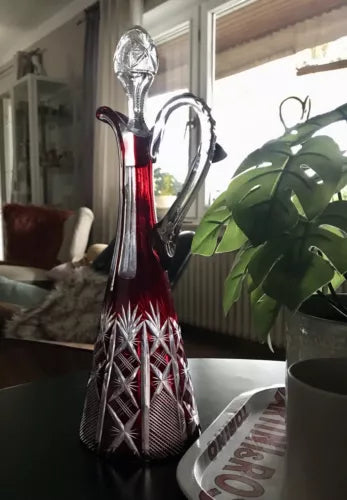 Antik Art Déco rubin rot Überfangglas Schliff Dekanter Karaffe Kristallglas EDEL