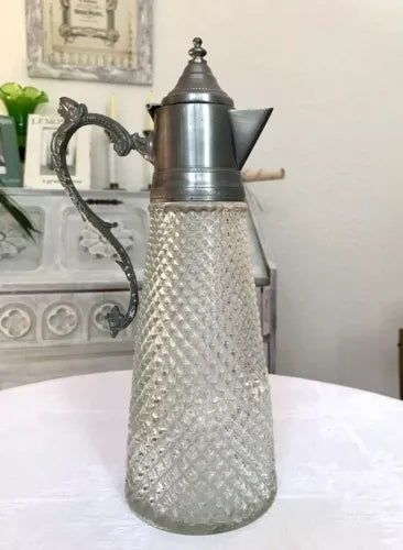 Antik? antikisiert Karaffe Krug Schankkrug Pressglas Zinnmontur? Schön