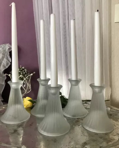 Vintage 5 Kerzenleuchter Kerzenständer Glas Pressglas satiniert