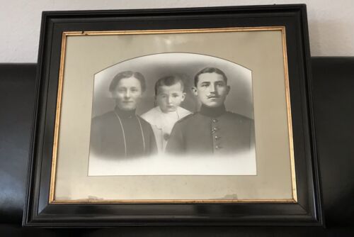 Antik Bilderrahmen Schellack inkl. Familien Porträt&Glas schwarz Mann in Uniform