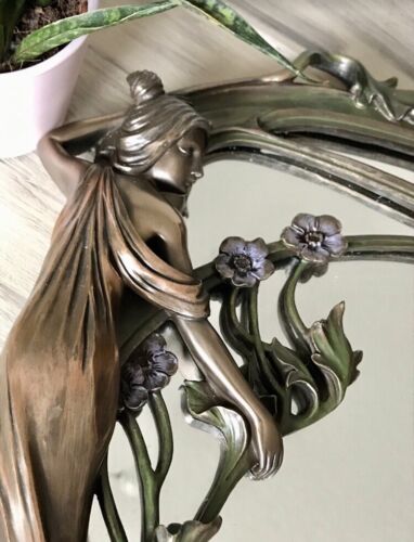 Replik antik Tischspiegel Spiegel Jugendstil Bronze Optik Frau