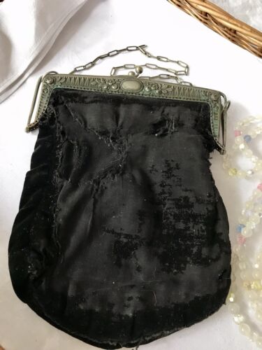 Antik Abendtasche Operntasche mit Bügel Alpacca Samt D.R.P.um 1900