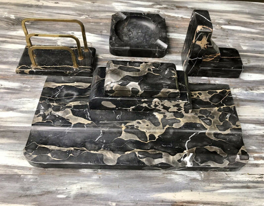 Antik Art Déco Schreibtischgarnitur Marmor Messing 4 Teile