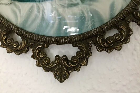 Alt Vintage Bilderrahmen Messing ? Guss ? Votivbild gewölbtes Glas Madonna&Jesus