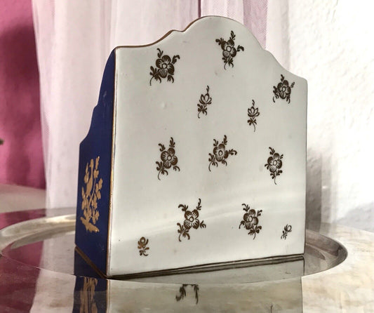 Antik Porzellan Briefablage Briefhalter blau matt Goldstaffage Wunderschön!