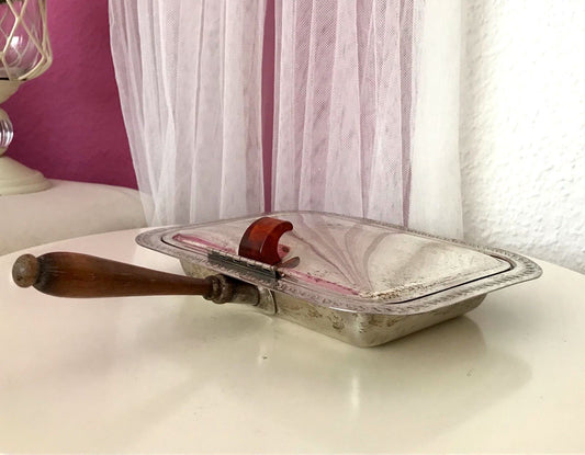 Antik englisch Gefäß Dose Behälter für Tischabfälle versilbert
