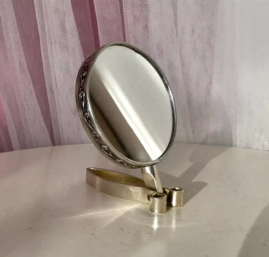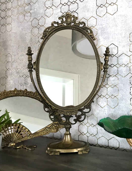 Alt Vintage Tischspiegel Spiegel schwenkbar Messing