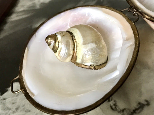 Antik? Alt Muschel Seemuschel goldfarbene Metallmontur Messing? Zierobjekt