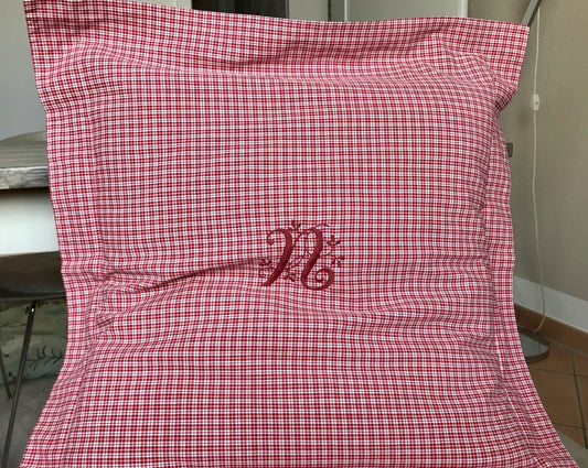 Antik? Vintage Alt Kopfkissen Bezug Baumwolle Monogramm N Stehsaum rot kariert