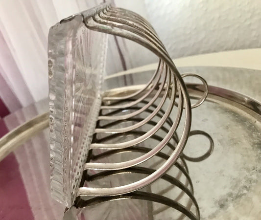 Vintage Toastbrot Ständer Halter versilbert Glaseinsatz Kristallglas 60er Jahre