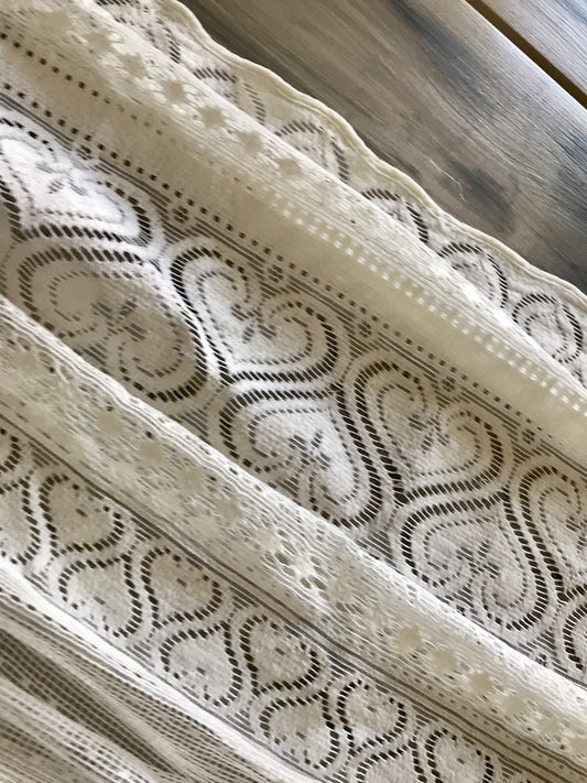 Antik Set 3tlg Fenster Gardine Vorhang Baumwolle Musselin? Filetspitze? Herzen