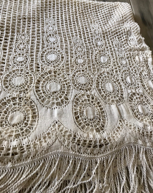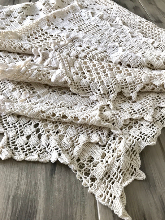 Antik Häkelspitze Tischdecke gehäkelt Creme Baumwolle Spitze Landhaus 170x145